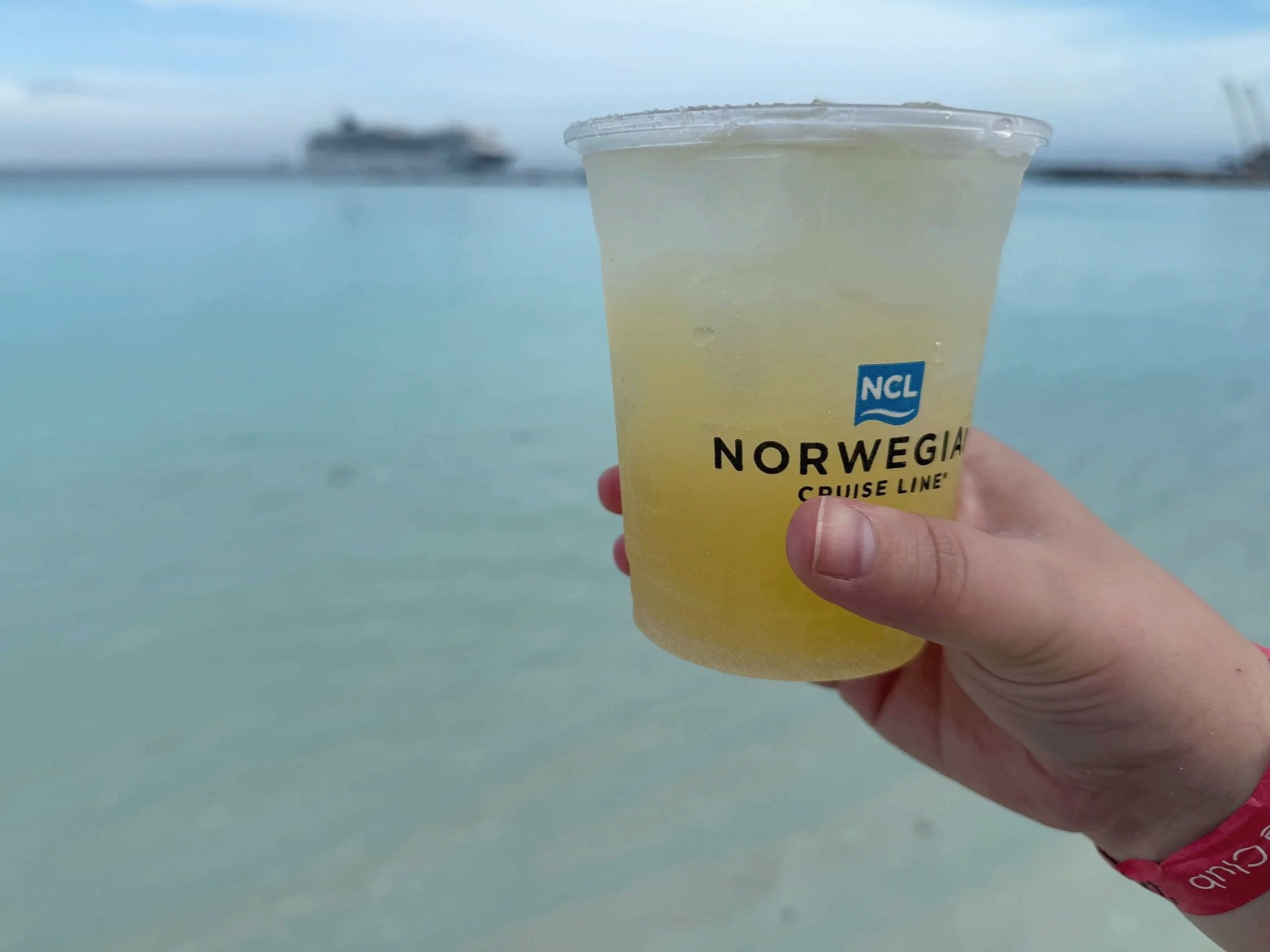 Free at Sea Plus includes unlimited drinks on Great Stirrup Cay, including at swim up bars. Non alcoholic drinks such as water are available at food locations, but guests should confirm package details before arrival.