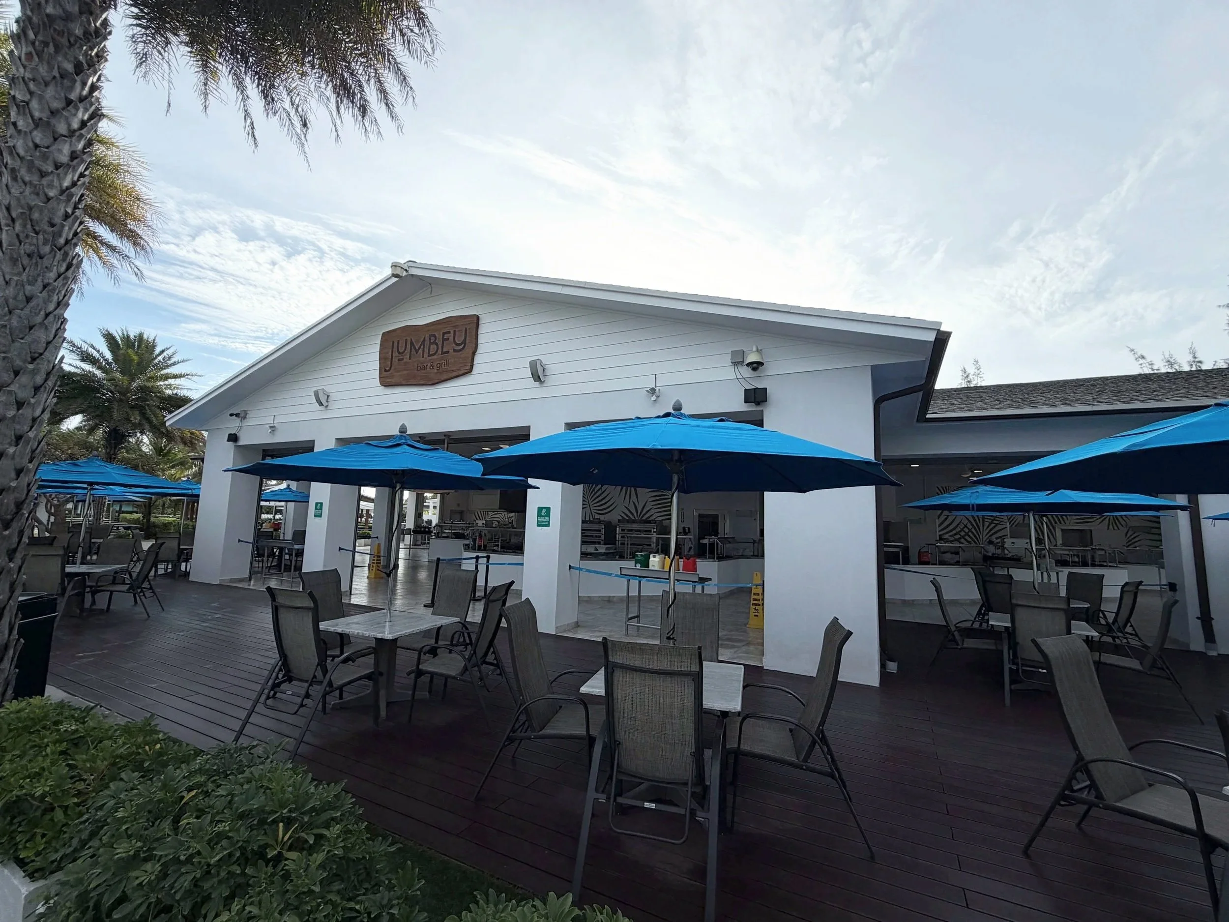 Jumbey Beach Grill is the main buffet on Great Stirrup Cay. It serves barbecue favorites such as ribs, chicken, corn on the cob, and fresh salads. This is the primary lunch location on the island. In addition to Jumbey Beach Grill, multiple smaller food locations are spread throughout Great Stirrup Cay.