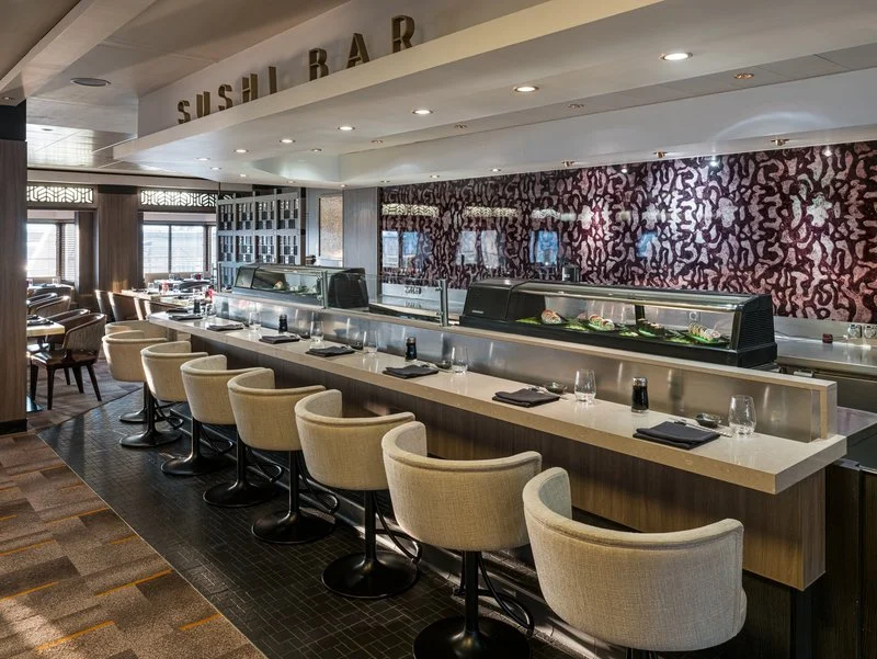 The Sushi Bar offers made to order sushi, sashimi, and Japanese small plates. This venue typically operates with individual item pricing rather than a fixed cover charge.