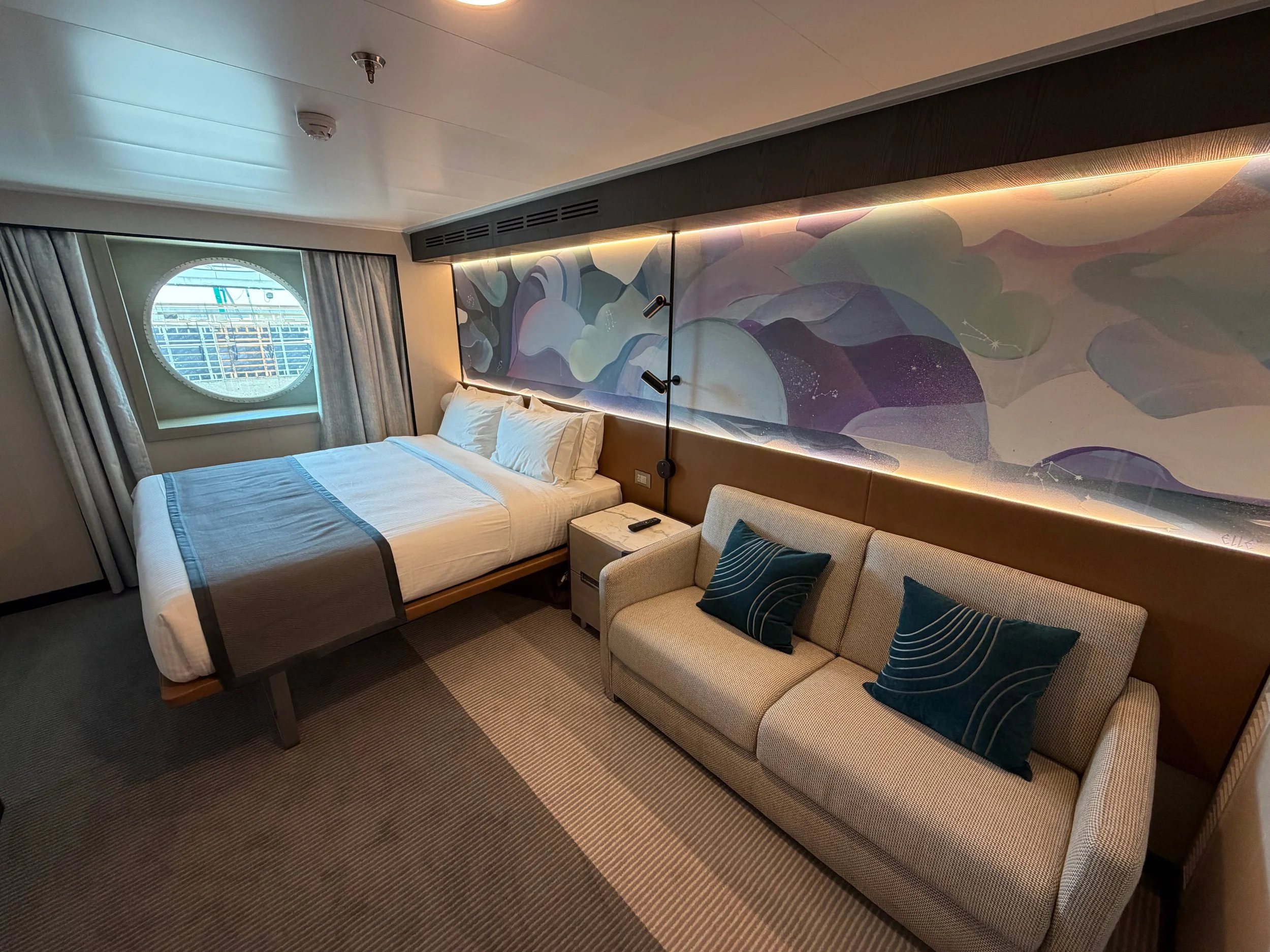 Norwegian Luna offers a full range of stateroom categories, from inside cabins to balcony rooms, club balcony suites, and The Haven suites. The ship continues the Prima Class approach of maximizing space and incorporating modern design elements into each cabin type. New to the Luna is the incorporation of the ship’s hull art as wallpaper in most cabins, which is a design touch that our team loved!
