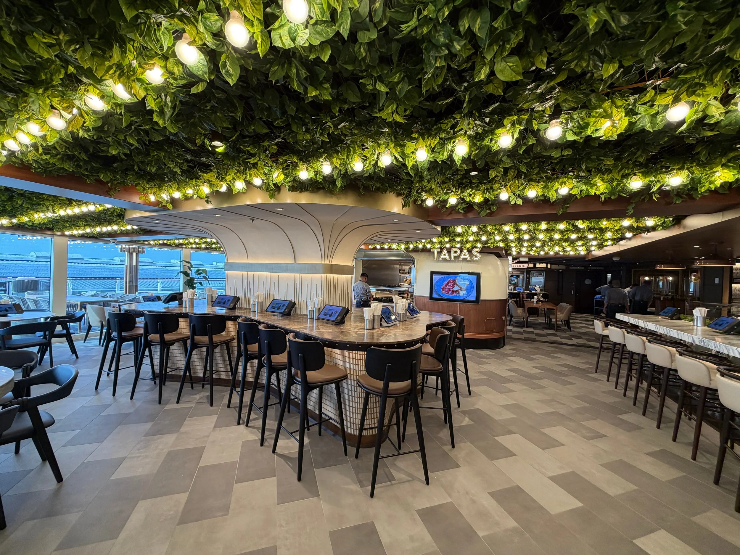 Food halls continue to be a highlight of the Prima Class, offering multiple quick service stations in one central location. This concept allows guests to sample a variety of cuisines without committing to a full sit down meal.