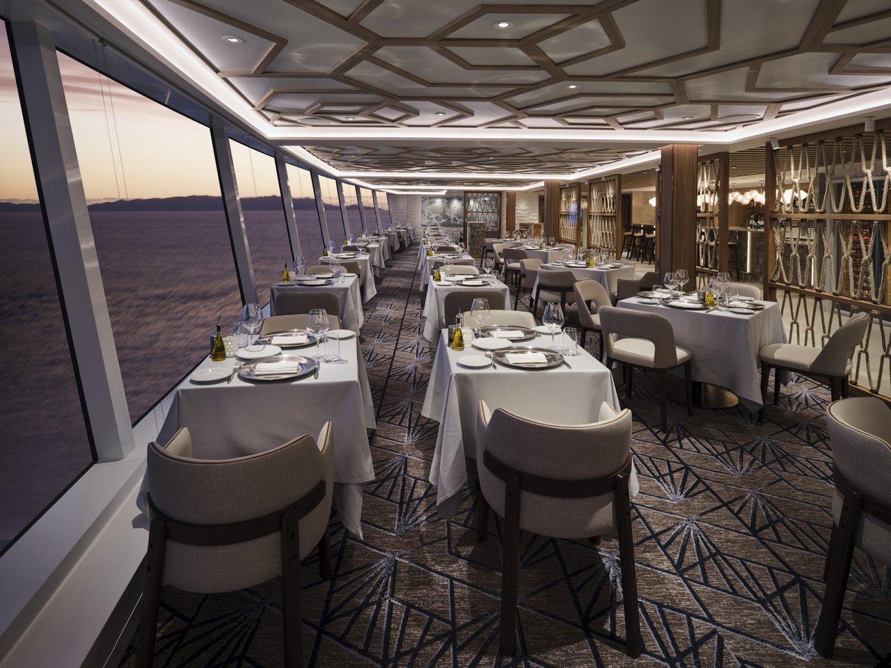 Cagney’s Steakhouse is the signature steakhouse onboard and features premium cuts of steak, seafood options, and traditional steakhouse sides.
